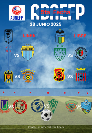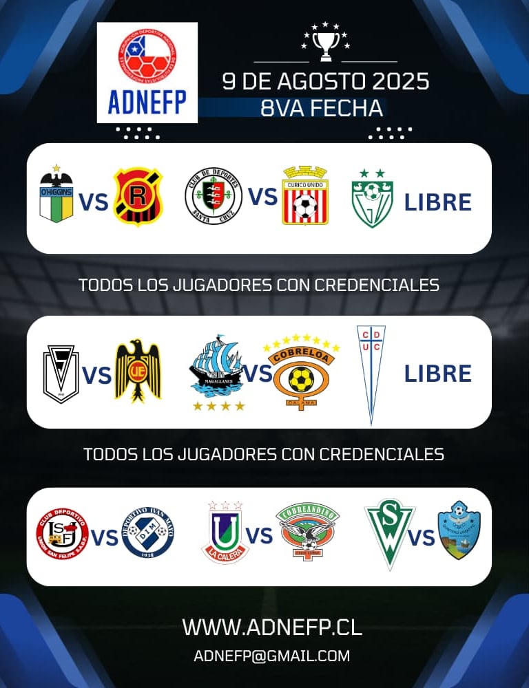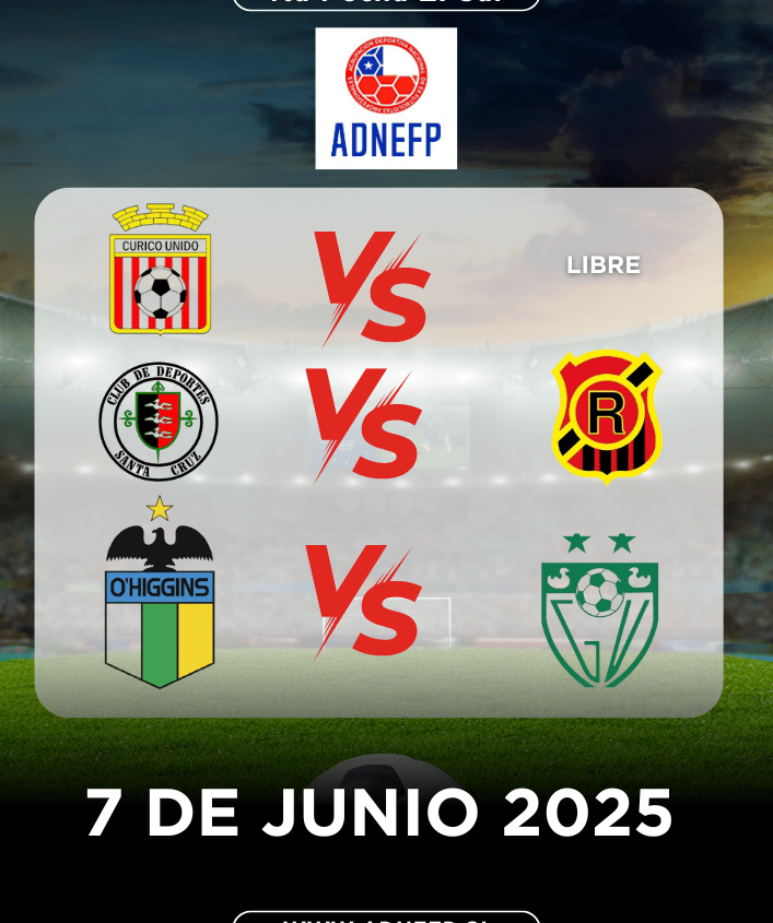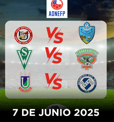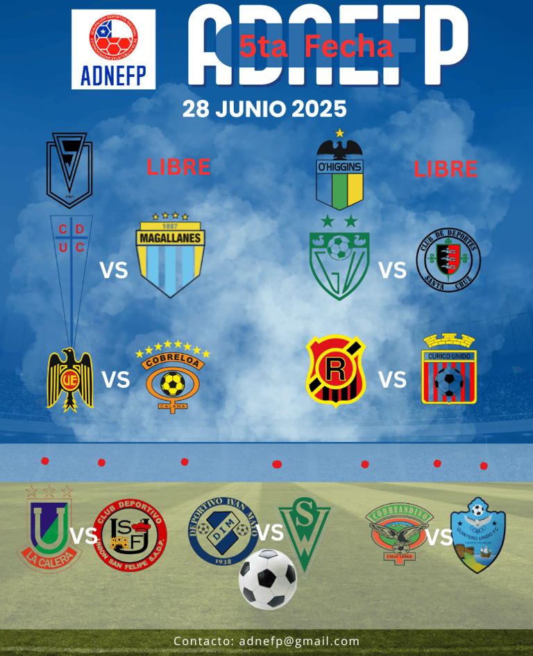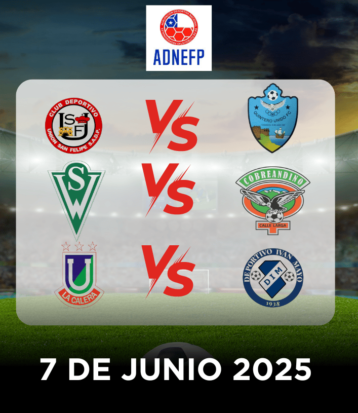 Unión la Calera vs Quintero Unido 13:00HRS Ivan Mayo vs Cobreandino 14:15 HRS Unión San Felipe vs Stgo. Wanderers 15:30HRS Fecha 20 de Junio 2025 Reprogramada.