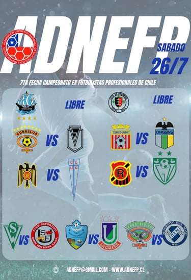 Con la disputa de la séptima fecha, el campeonato de la Agrupación Nacional de Ex Futbolistas Profesionales (ADNEFP) entra en su etapa decisiva. En cada zona —norte, centro y sur— los equipos se juegan sus últimas cartas para asegurar un lugar en los cuartos de final, que marcarán el inicio de la fase de eliminación directa rumbo a la gran final.