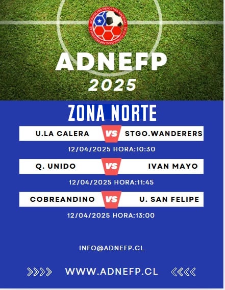 Cobreandino vs Unión la Calera 11:00HRS Quintero Unido vs Stgo. Wanderers 12:15HRS Ivan Mayo vs Unión San Felipe 13:30HRS Fecha 24 de mayo 2025